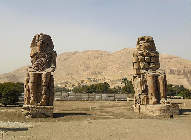 ناجيان من العملاقان : تمثالان ضخمان للملكحتب الثالث، وهما الجزءان الوحيدان فقط من معبده الجنائزي.